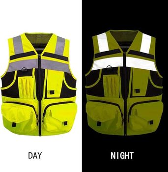 سترة أمان 10 جيوب للرجال والنساء ، سترة عالية الوضوح مع شرائط عاكسة 3 أمتار ، قماش أكسفورد