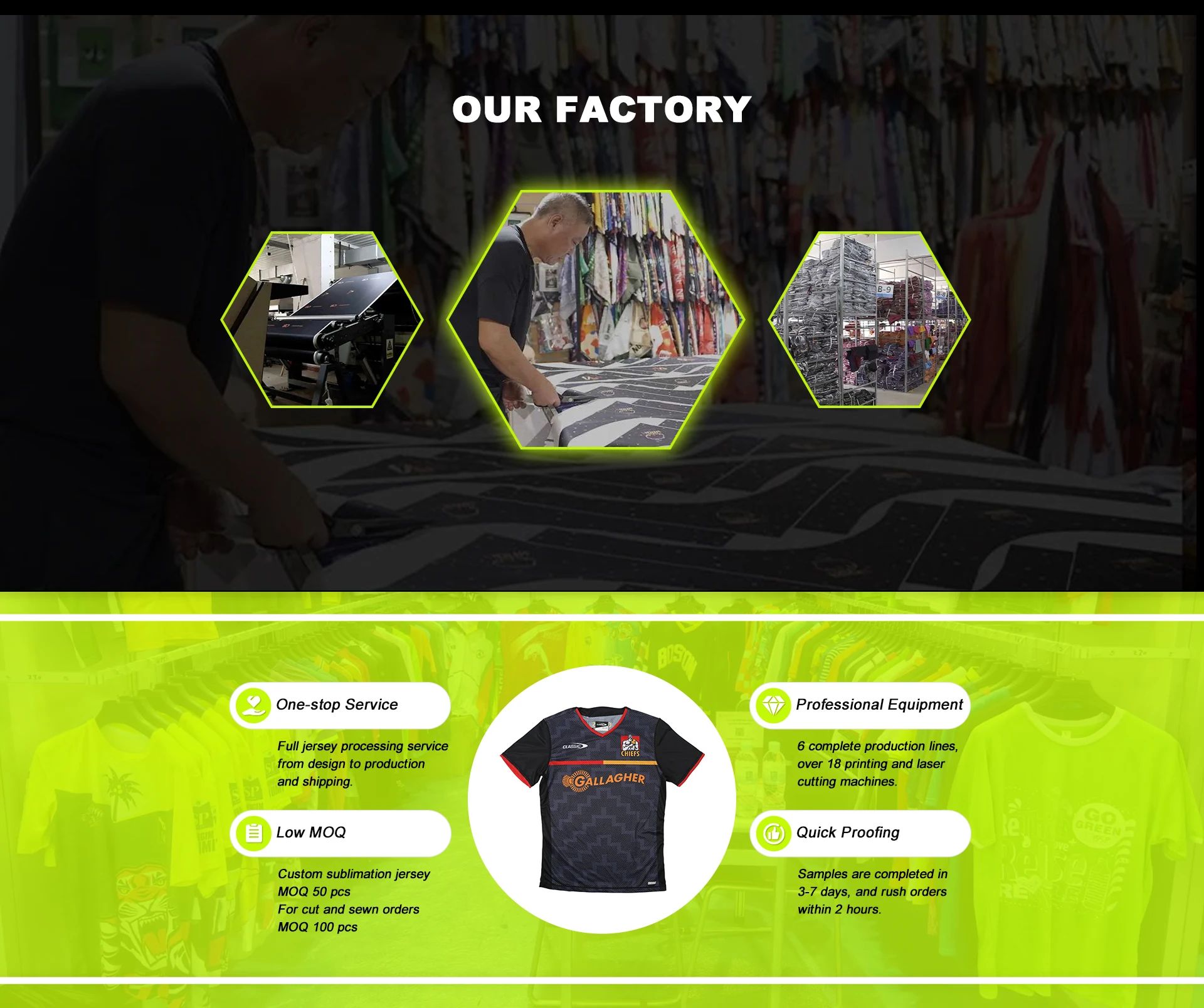 Principais produtos:Jersey de Futebol, Basquete Jersey,Rugby Jersey